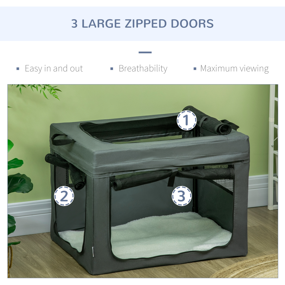 69cm Foldable Pet Carrier with Cushion - Grey Cat & Small Dog Bag